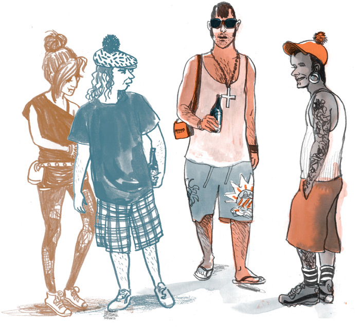 lately „all“ girls are rolling their hair up into a bun. What kind of cuddly cuddle balls are the cool guys wearing on their hats there?