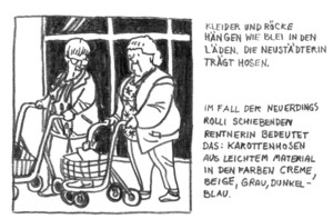 Streifen mit Niveau Eine Comic-Ausstellung ohne Micky Mäuse und Superhelden präsentiert das Büro für Kunst ‚zeitraum_ex!t’ derzeit in den Räumen des ehemaligen Mannheimer Gesundheitsamts. Zu sehen ist eine teilweise sehr persönliche Mischung aus Skizzen, Reisetagebüchern, Momentaufnahmen und Reflexionen der Künstler Pierre Thomé, Oliver Grajewski, Noyau, Kai Pfeiffer und der Künstlerin Ulli Lust. „Travelling here around?" – "No! We are invited sto stay here by this Comic Festival!" – "Ah! Bitterkomix!" "Hee …. Yes!" (They are so fucking famous!!) – Dieser Dialog zwischen zwei Unbekannten in einer Bar stammt aus der Feder des Züricher Zeichners Yves Noyau, dessen Reiseerzählungen unter anderem in Wien, Tokyo, südafrika und Instanbul entstanden sind. Seine dokumentarische Illustration belegt zugleich, wie weit die Szene sich von den klassischen „komischen Streifen" entfernt hat. In den Hochburgen des Comics Belgien, Frankreich, Nordamerika und Kanada läst sich schon seit einigen Jahren eine Tendenz zu biografischen und gesellschaftskritischen Themen beobachten. Formal am klassischsten mutet in der hochkarätig besetzten Ausstellung noch die Arbeit „Wer bleibt – Comicreportage aus Halle-Neustadt" von Ulli Lust an. Die Zeichnungen der Berlinerin beruhen auf ausführlichen journalistischen Recherchen, die wie ihre Reportage über Halle-Neustadt auch ganz alltägliche Beobachtungen einschließen. Vom Alltag in Halle-Neustadt bis zur Chinareise „Das uramerikanischste Beinkleid von allen, die Jeans, hat Neustadt ganz und gar erobert. Die Röhrenjeans, die gerade in Berlin und London so en vogue ist, tragen hier die 30- bis 50-jährigen gerne mit Jeansjacke, was immer ein wenig verwegen wirkt", lautet beispielsweise der Text zum Bild eines Kinderwagen schiebenden Pärchens. Fast schon malerische Qualitäten haben dagegen die Tuschearbeiten von Pierre Thomé, die auf einer Chinareise entstanden sind. Mit leichtem kalligraphischen Strich skizziert der Leiter des Studienbereiches Illustration an der Luzerner Hochschule für Gestaltung und Kunst seine Eindrücke. Im Zeitalter moderner Medientechnologie verlassen die oft mit Chiffren arbeitenden Zeichnungen auch schon mal das konventionelle weiße Blatt. „Die Natur ist nicht schlecht, nur voll" titelte beispielsweise Oliver Grajewski seine wandfüllende Projektion, in denen er die Mythen der Alltagskultur und Werbung aufgreift. Seltsame Monster, „Kackmännchen", Castor-Gegner, stürzende Pferde und Schlagersänger bevölkern die über 100 Sequenzen umfassende Serie. Grajewski ist Absolvent der Berliner Hochschule für Bildende Künste und Herausgeber der Heftserie „Tigerboy". Außerdem veröffentlicht er in der Süddeutschen Zeitung, der Berliner Zeitung und der taz. Der Berliner Zeichner Kai Pfeiffer ist einer der Pioniere der Comicreportage im deutschen Sprachraum. Auf kitschig rosa eingefärbtem Hintergrund tummeln sich seine Kaffeetassen, Kellner und skurrilen Gäste wie in einem typischen Wiener Kaffeehaus. Sein Stimmungsbild hat Pfeiffer mit O-Tönen unterlegt. Als die ersten Gäste beim Wein einschlafen und übermüdete Kellner zu gähnen beginnen, wird auch der Sound immer mechanischer und drängender: Die plüschige Behaglichkeit wird zur klaustrophobischen Beklemmung.