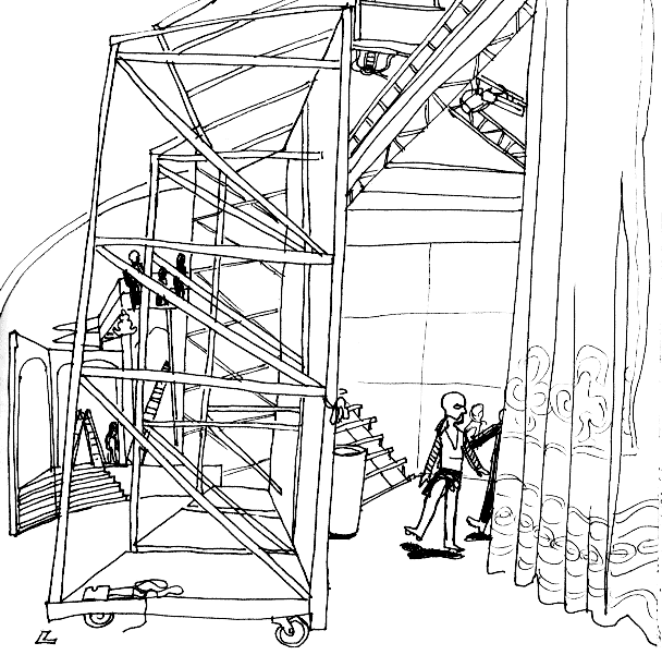 „Du Martin, bei dieser Szene, ... ich stehe da so auf der Bühne und du stehst dort, und ich möchte gerne auf zum Sultan lostrippeln, aber ich kann nicht, denn da steht Martin, direkt auf meiner Geraden.