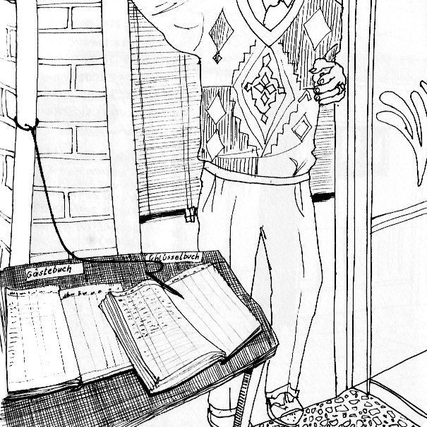 „Oben im 4. Stock, zu DDR-Zeiten, hatte die Stasi ein Büro. Das haben sie nur selber verschlossen und scharf gemacht. Im Keller hatten sie eine Abhörzentrale. Die hatten mit dem Rest des Hauses nichts zu tun, aber durch meine Tür reingekommen sind sie auch. Die hab ich schon am Gang erkannt, normaler als normal waren die.